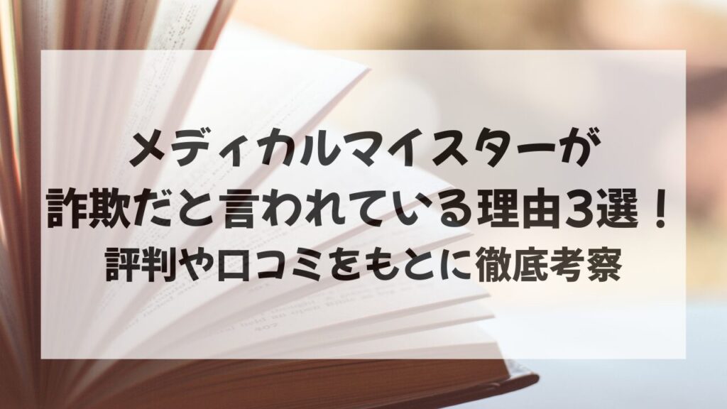 メディカルマイスターが詐欺だと言われている理由3選!評判や口コミをもとに徹底考察