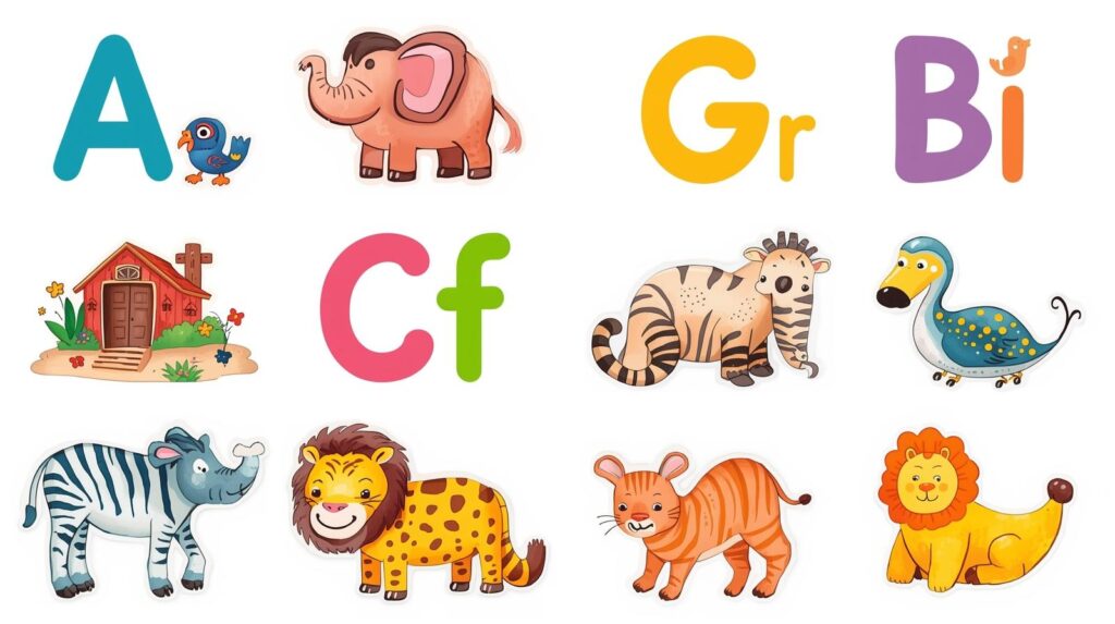 「banana」や「ball」といった子どもに身近な単語が多く使われており、音と文字を結びつけやすく、フォニックスの基礎を自然に習得できます。